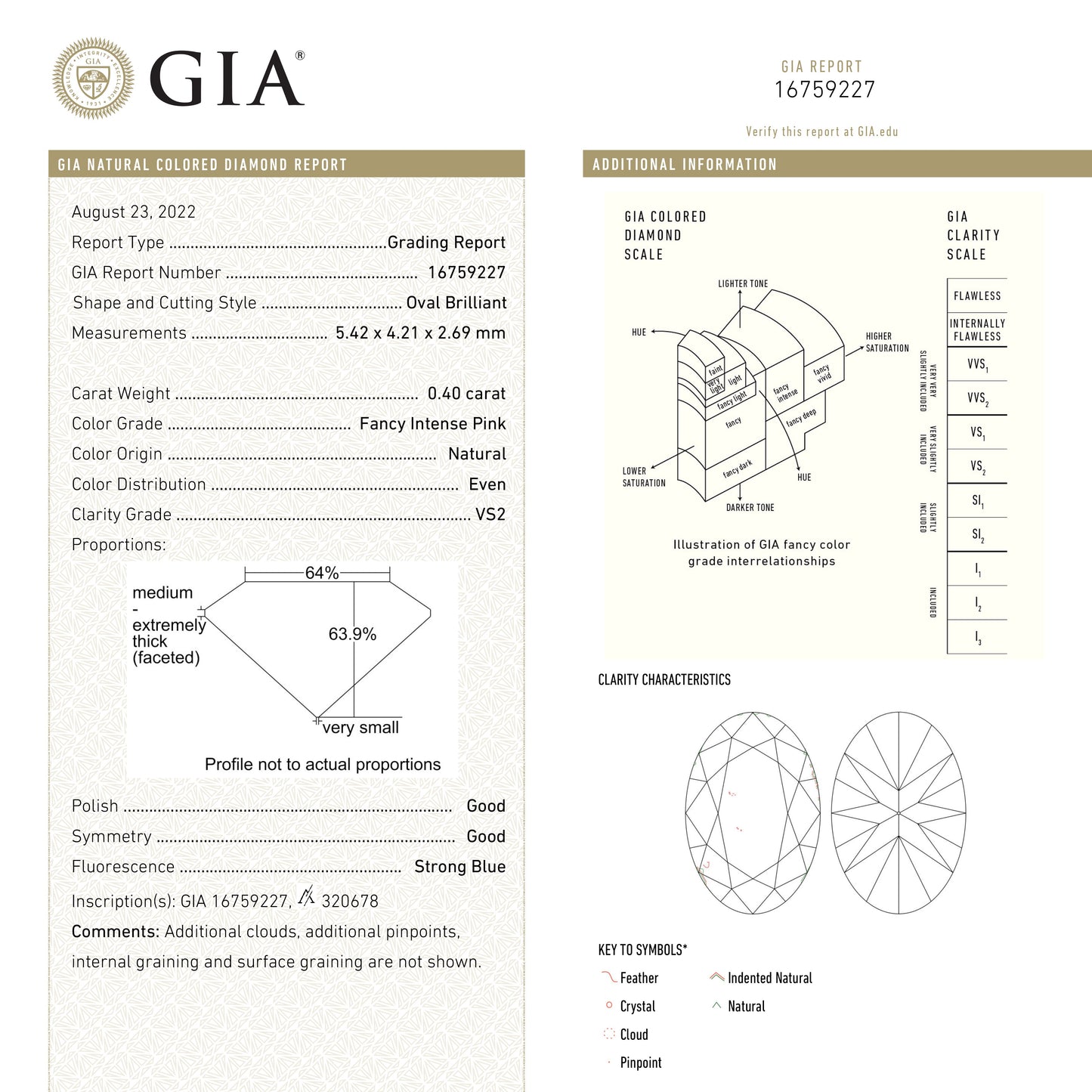 Share0.40ct 5.42x4.21x2.69mm GIA VS2 Fancy Intense Pink Oval Brilliant 24157-01 Dallas Maynard Jewelry
